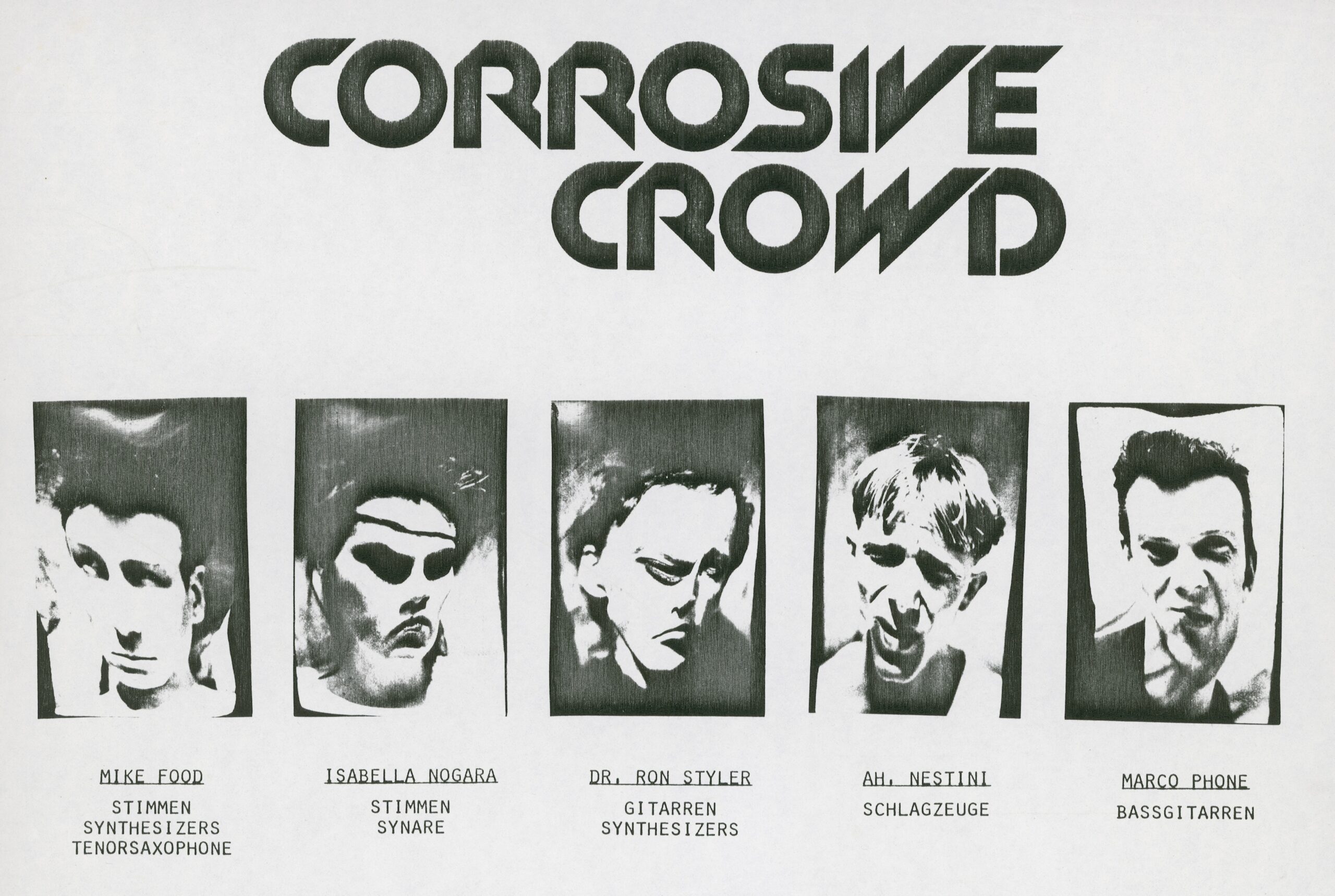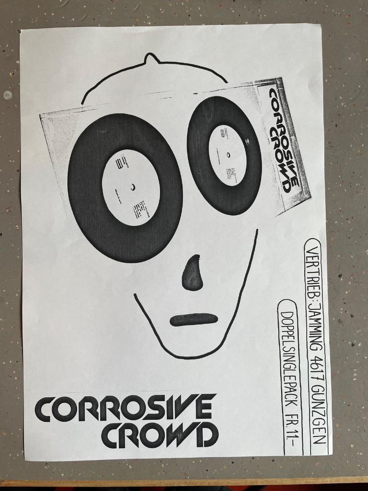 Im Jahr darauf schloss sich ihnen die junge Sängerin Isa Nogara an. Unter dem Namen CORROSIVE CROWD bestritten sie mit etlichen weiteren Züri-Bands am 29. August 1980 im Volkshaus Zürich am “Züri Monster 1980” ihren ersten Auftritt. 1981 stiess als weiteres Mitglied Mike Food – voc, synth, tenor-sax dazu. Er, Marco und Isa wohnten von nun an zusammen an der Häringerstr. 19 am Rande des Niederdorfes in Zürich in einem Gebäude wo sich auch das Rotlichtmilieu angesiedelt hatte. In ihrem Übungsraum spielten sie auf einem 4 Spur Aufnahmegerät die vier Songs «Insektenliebe», «Sad Or Mad», «Masokism» und «What Do You Want To Me» ein. In einer Auflage von 1000 Exemplaren produzierten sie eine Doppel-Single und vertrieben einen Teil der Auflage unter ihrem eigenen Label C.C. Records selbst (Ein Teil wurde auch von Jamming vertrieben, später wurde auch ein Teil der Auflage entsorgt).